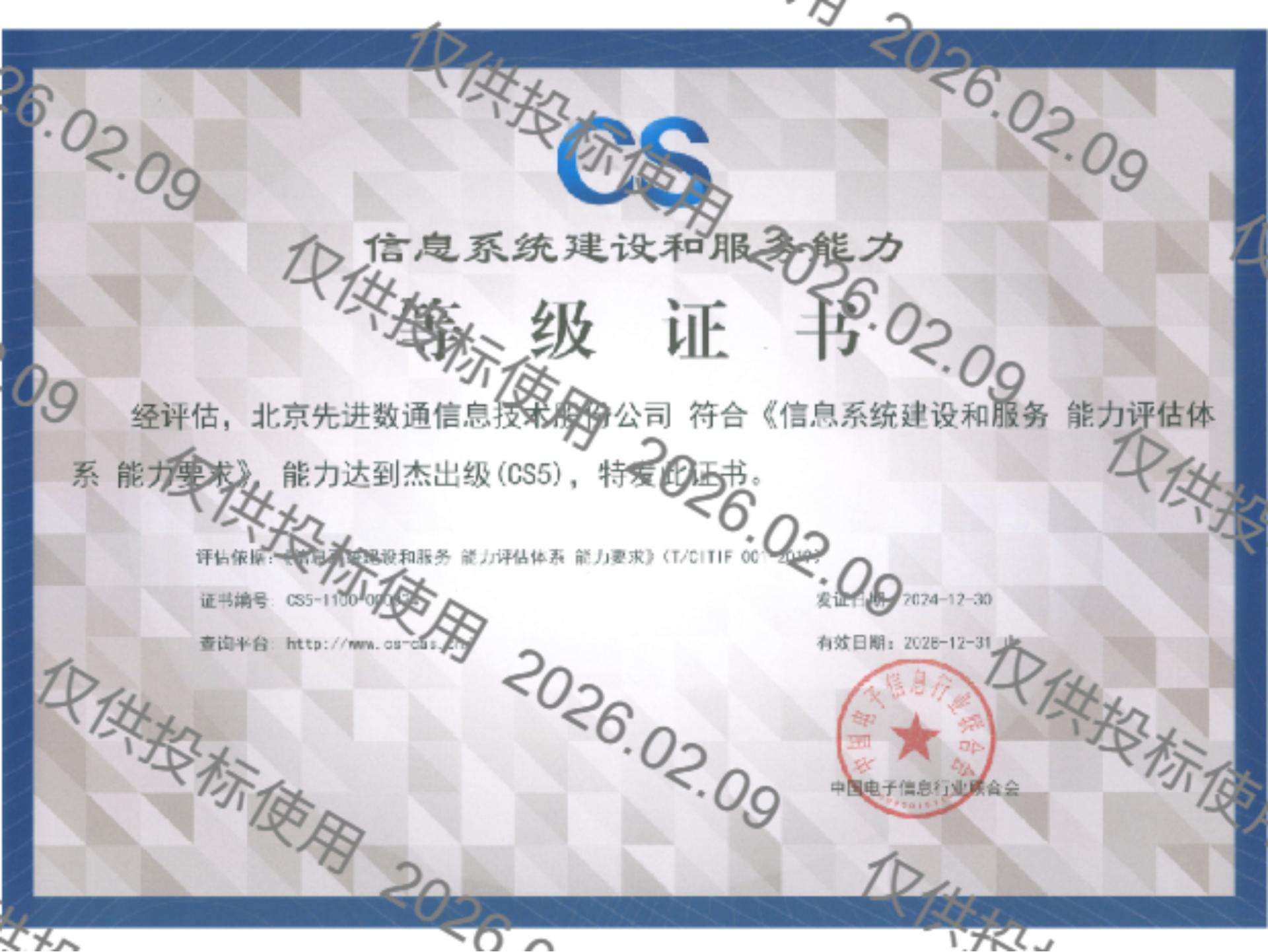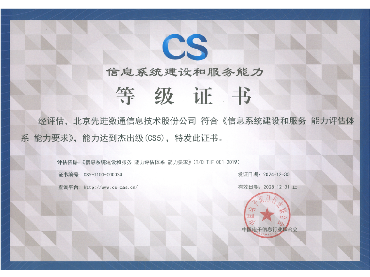 MG冰球突破官网先后取得CMMIL5、软件能力成熟度五级(SPCA 5)、信息系统建设和服务能力评估体系(CS)5级、ITSS成熟度一级、信息系统安全集成服务资质二级、信息系统安全运维服务资质二级、国产化信息系统集成和服务能力评估四级(LS4)、北京市企业技术中心等资质认证,并取得ISO9001、ISO20000、ISO27001、ISO14001、ISO45001、ISO22301、ISO37001、ISO28001、GBT29490等标准体系认证,具备行业领先的技术开发、工程实施及服务保障能力。