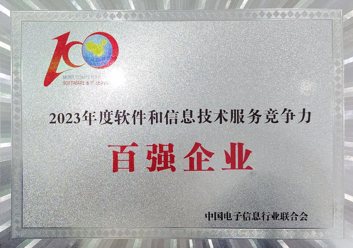 MG冰球突破官网取得“2023年度软件和信息技术 服务竞争力百强企业”称号