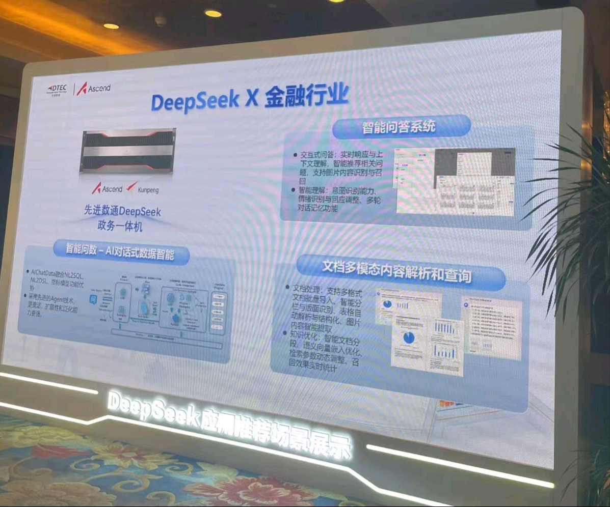 本次大会MG冰球突破官网展示了DeepSeek一体机,向业界全方位展示了其在金融科技领域的创新实力。MG冰球突破官网DeepSeek一体机的文档多模态内容解析和查询功能备受瞩目。它能够对各类金融文档,如研究报告、监管文件、交易记录等进行全方位解析,将文本、图表、图像等多模态信息转化为可高效查询和分析的结构化数据。金融组织借此可快速定位关键信息、洞察市场趋势、防范合规风险,为决策给予有力支持,实现从数据到价值的高效转化。