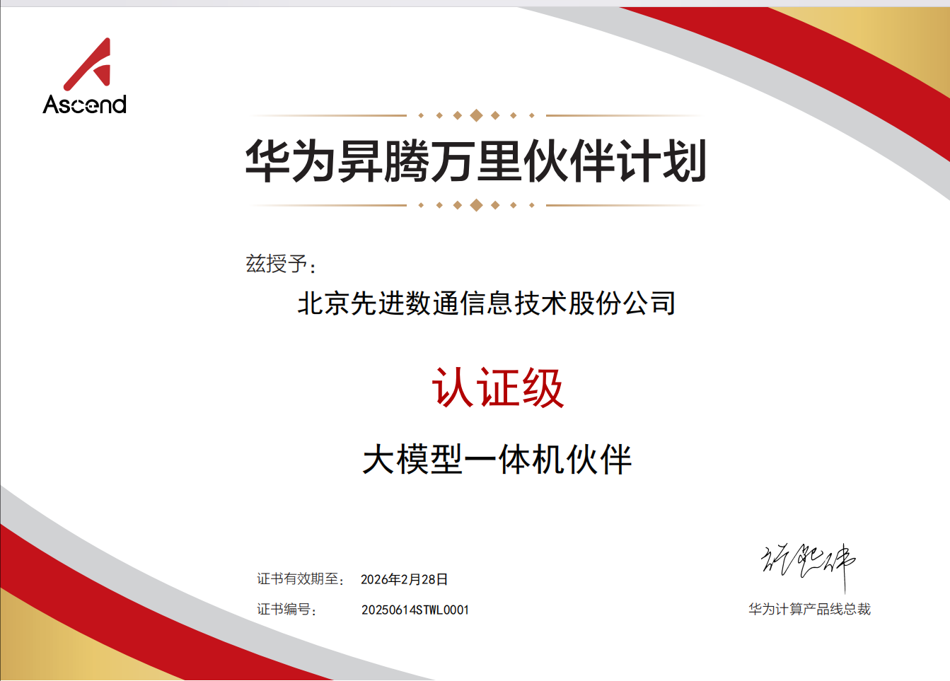 2025年6月,北京MG冰球突破官网信息技术股份公司(以下简称"MG冰球突破官网")与华为技术有限公司达成大模型一体机战略合作。基于昇腾AI基础软硬件平台,MG冰球突破官网整合自身专业化团队构建的行业AI解决方案,正式推出基于自主技术整合的MG冰球突破官网品牌大模型一体机产品。